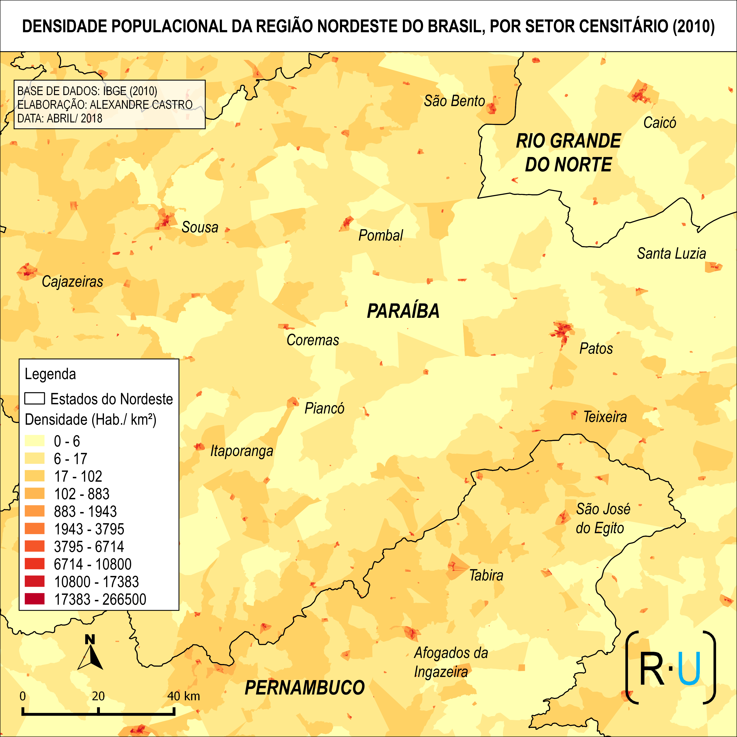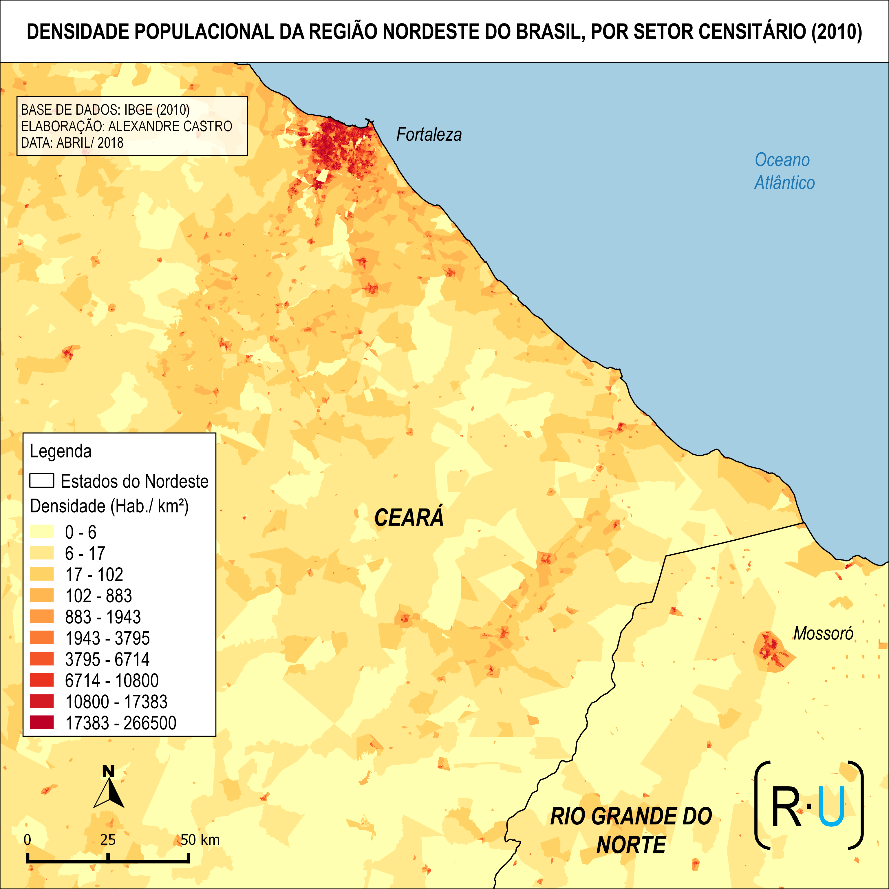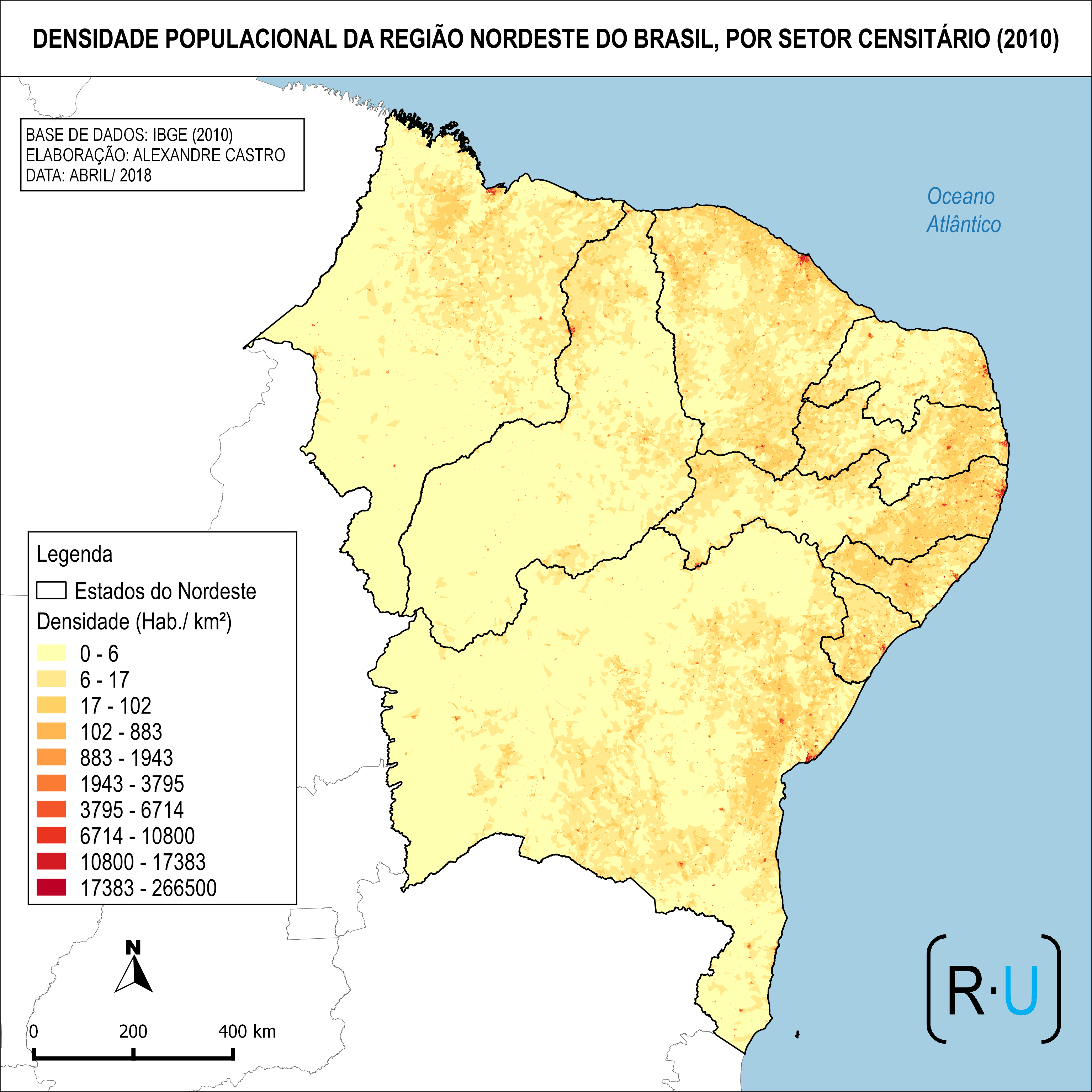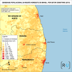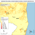 Este post traz a primeira parte do projeto Mapas do Nordeste, com alguns mapas temáticos sobre densidade populacional da região Nordeste do Brasil, disponibilizados para download.