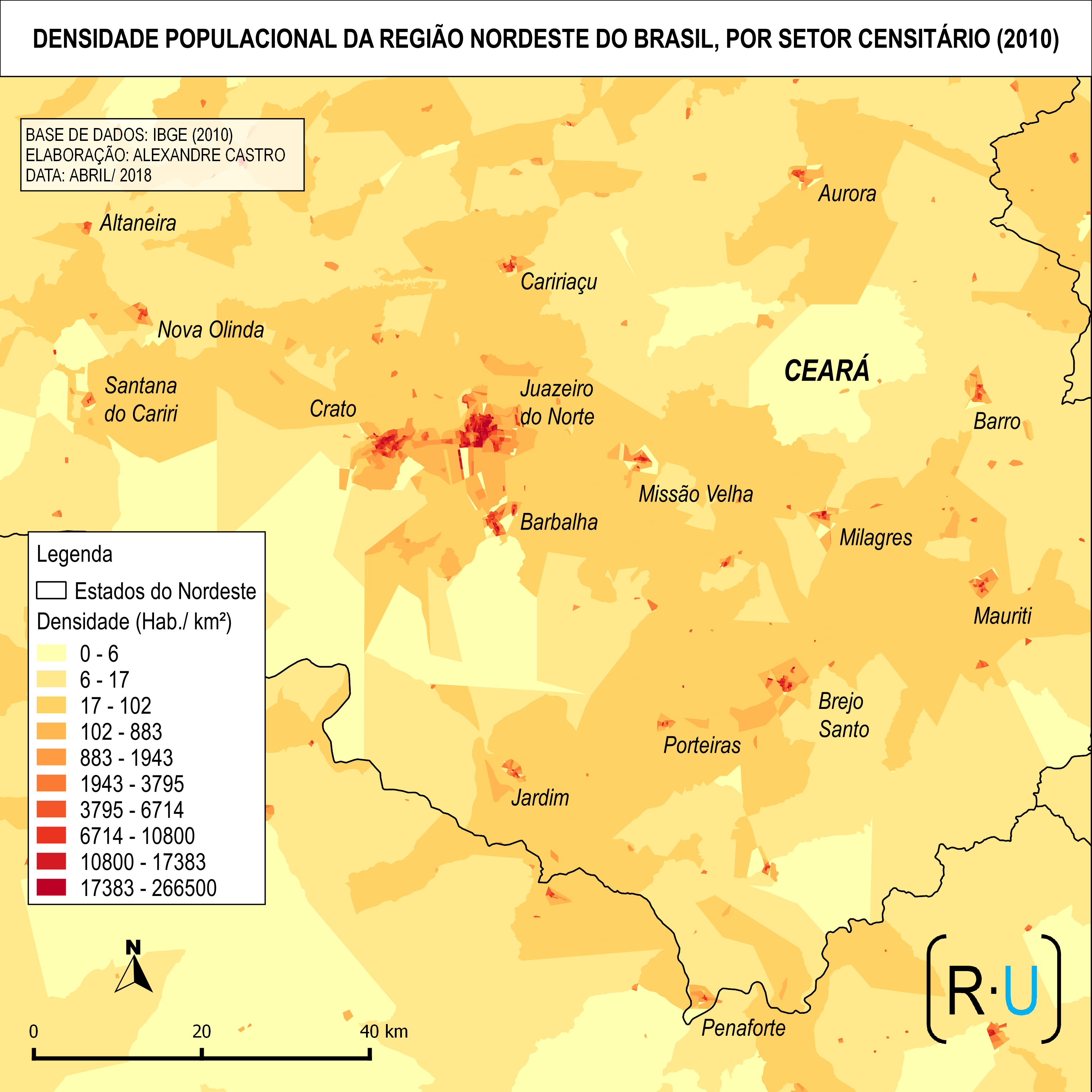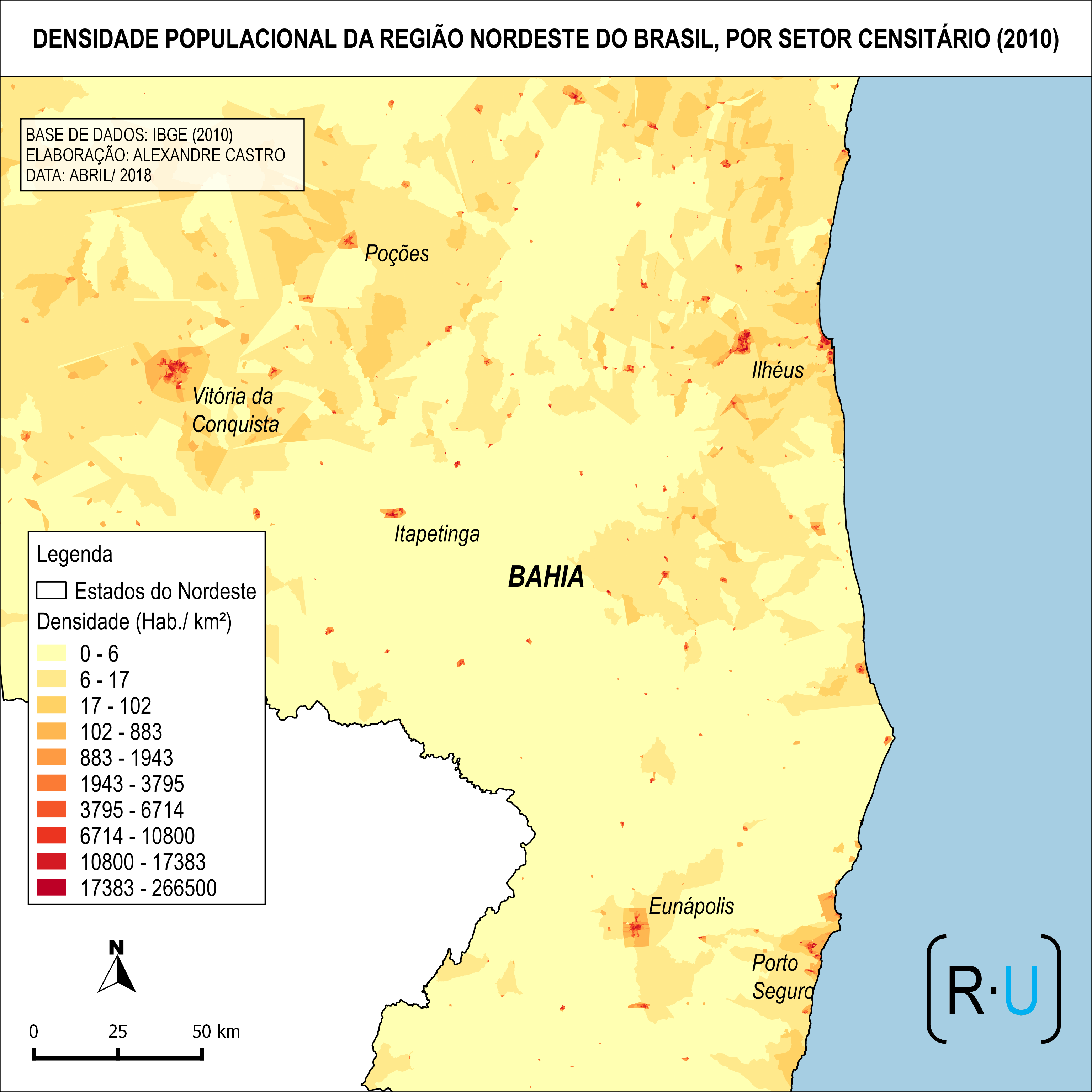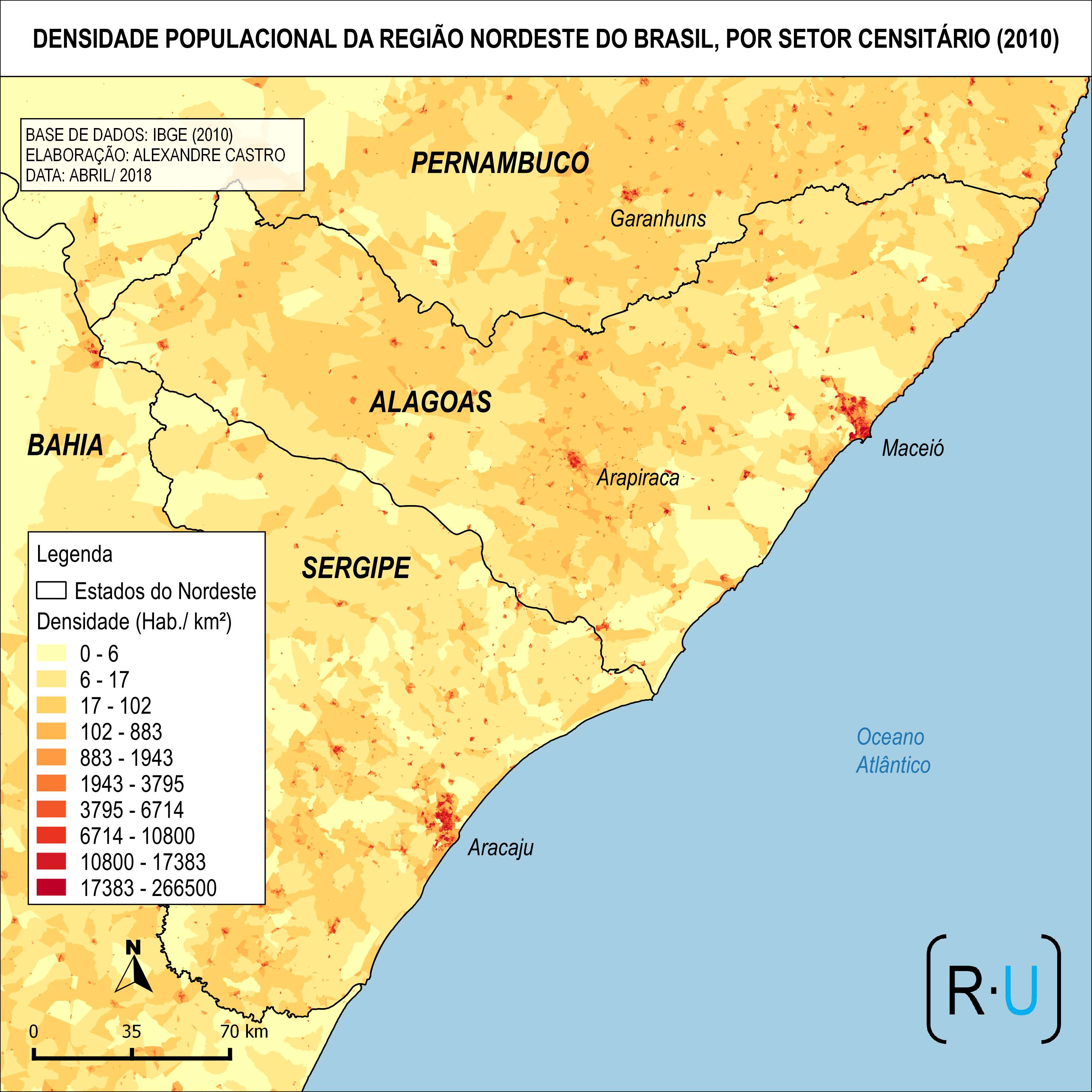 Este post traz a primeira parte do projeto Mapas do Nordeste, com alguns mapas temáticos sobre densidade populacional da região Nordeste do Brasil, disponibilizados para download.