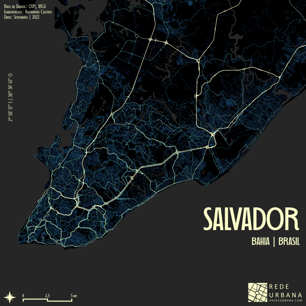 Estamos disponibilizando, para download gratuito, um mapa da cidade de Salvador, Bahia, Brasil.