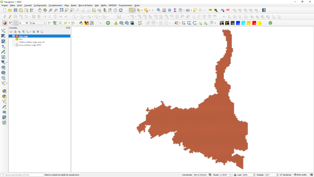 Agora a sua grade hexagonal possui a extensão e formato da sua base geográfica.