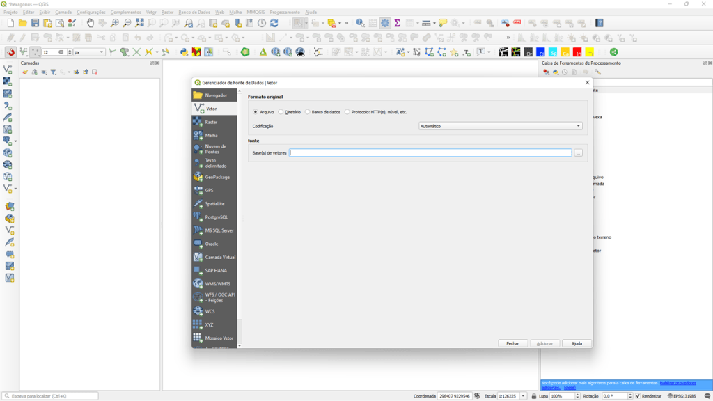 Passo 1: Insira o(s) arquivo(s) vetorial(is) com os dados que quer transformar em hexágonos