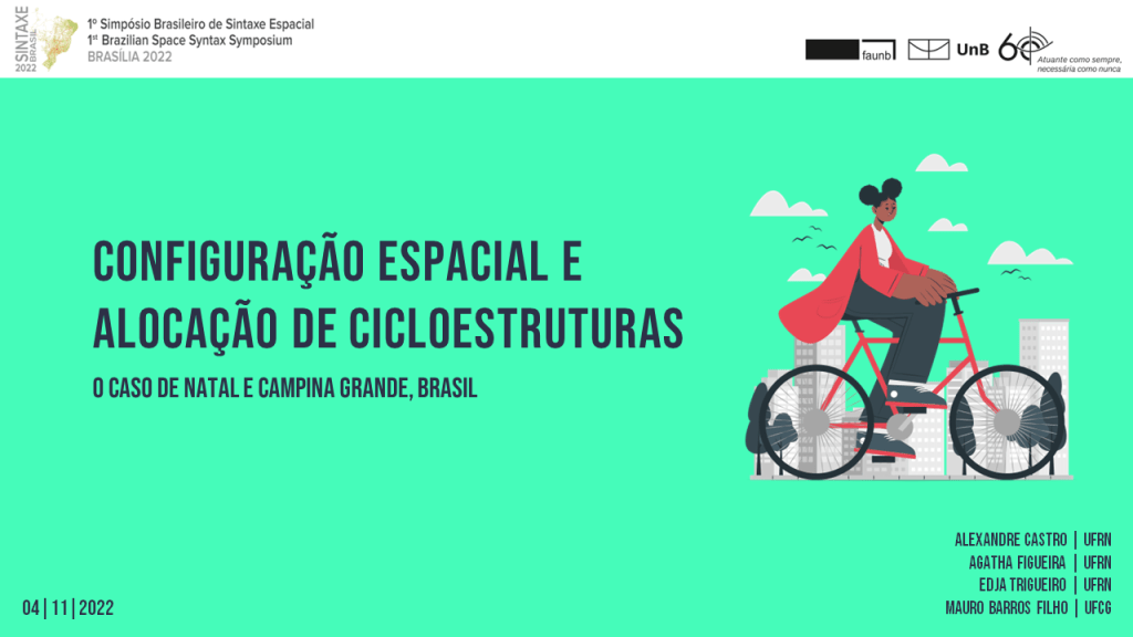 Estamos disponibilizando, para download gratuito, o material de apoio da apresentação do artigo intitulado “Configuração Espacial e Alocação de Cicloestruturas: O Caso de Natal e Campina Grande, Brasil”, de autoria de Alexandre Castro (eu), Agatha Figueira, Edja Trigueiro e Mauro Barros Filho, apresentado no 1º Simpósio Brasileiro de Sintaxe Espacial, ocorrido em formato online no dia 04/11/2022.
