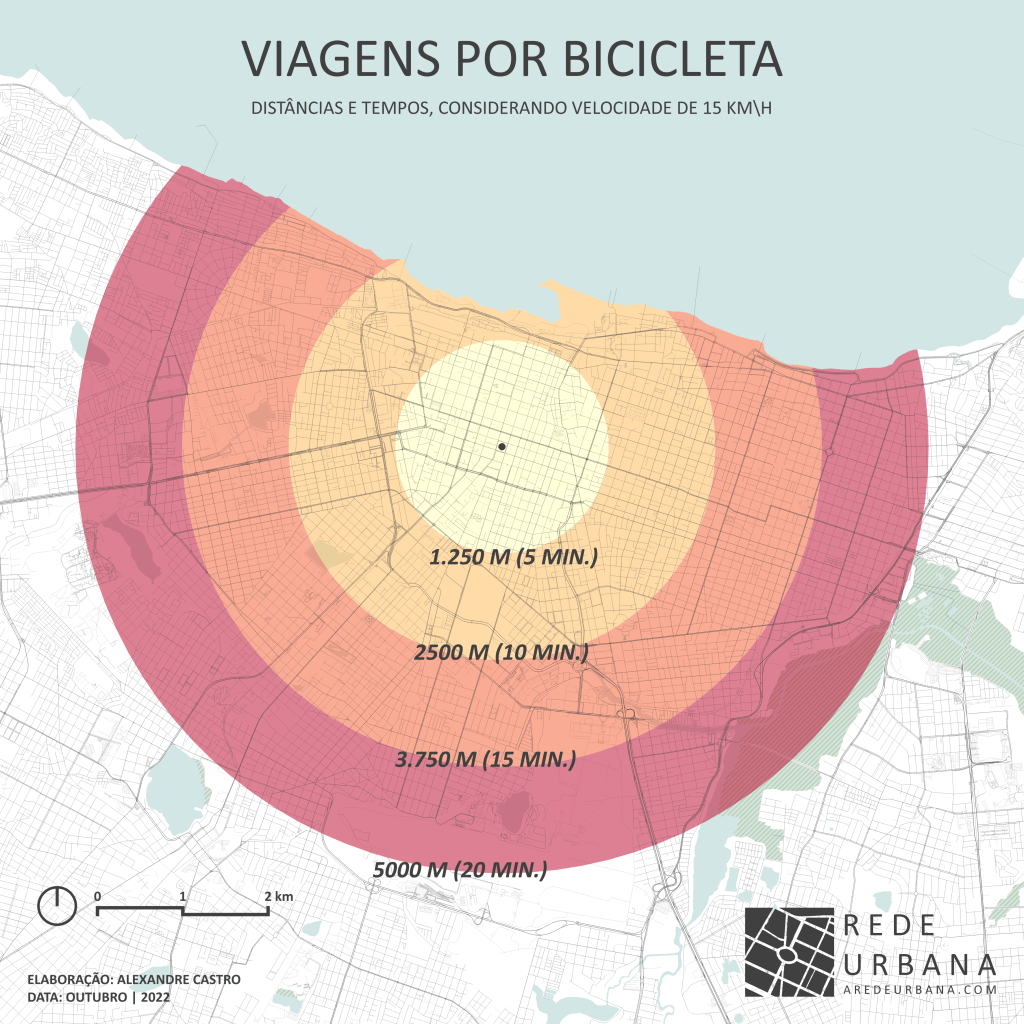 McNeil (2011) afirma que alcançar diferentes destinos em até 20 minutos de bicicleta é um parâmetro para indicar o grau de acessibilidade por bicicleta de um determinado local ou cidade.